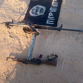 " After the ensuing firefight 3 Boko Haram terrorists were neutralized, One Gun Truck, One Anti Aircraft Gun ,One AK 47 Rifle, 3 Shells for making Improvised Explosive Device were captured. Further exploitation carried out by the resilient troops recovered additional 2 AK 47 Rifles. Troops have dominated the area with aggressive patrols."